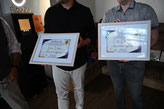 Sebastian Bock mit zwei Goldenen Ehrennadeln von der DBU und vom PBVRW und die Silberne Ehrennadel der DBU für Ingo Lamberti.